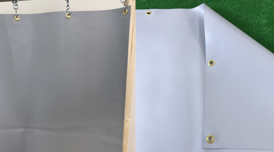 ターポリン1類生地厚み:0.5mm屋外対応の厚手の防炎ビニールカバー・シート。厚みが0.5mmで強度があり、防水性・耐候性を備えたターポリン生地です。