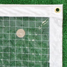 屋外・高耐候の糸入り透明ビニールカバー・シート。太陽光などの紫外線に対し、高い耐候性がございますので、通常の屋内用や耐候性がないビニールに比べて長期間透明性を保持し、硬化しづらい屋外用ビニールカバーに最適な素材です。防水・防炎機能も兼ね備えておりますので、屋外・防水ビニールカバーなどで透明度を求める場合には最適です。厚みも0.55mmと厚手クラスですので高い強度と耐久性がございます。当店の糸入り透明でも人気NO1のビニール素材です。通常、厚みが0.4mm以上あれば屋外用としても利用可能ですが、【耐候性】の機能がない素材は、太陽光などの紫外線によって劣化・硬化が早く、屋外で使用すると2~3年程度の寿命となりますが、こちらの素材であれば4~6年程度はご利用頂けます(絶対値ではございません)。